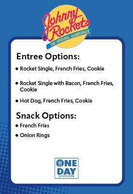 Enjoy two meals (includes an entree, side and dessert) and one snack at participating locations throughout Fun Spot America. Your first meal can be redeemed for lunch, and the second meal for dinner, with one snack available during the day.